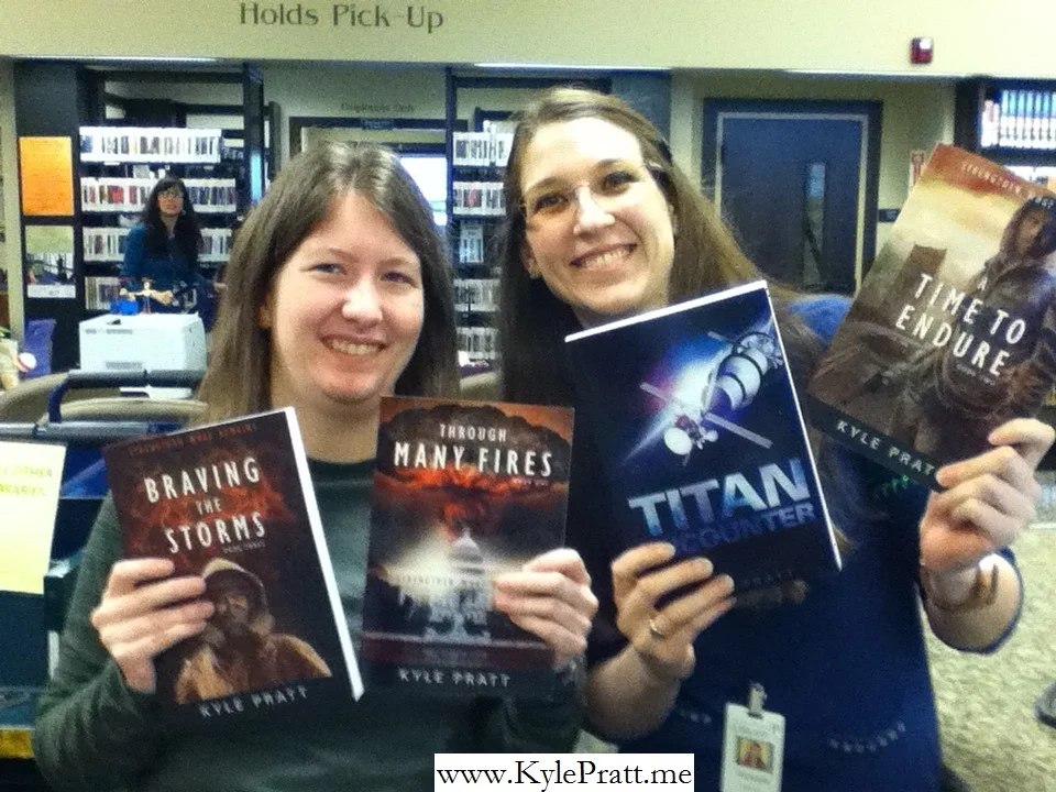 The picture here is from when I delivered the copies of Braving the Storms, Through Many Fires, Titan Encounter and A Time to Endure. I’ll go back, and get a picture of the display, when it is complete.